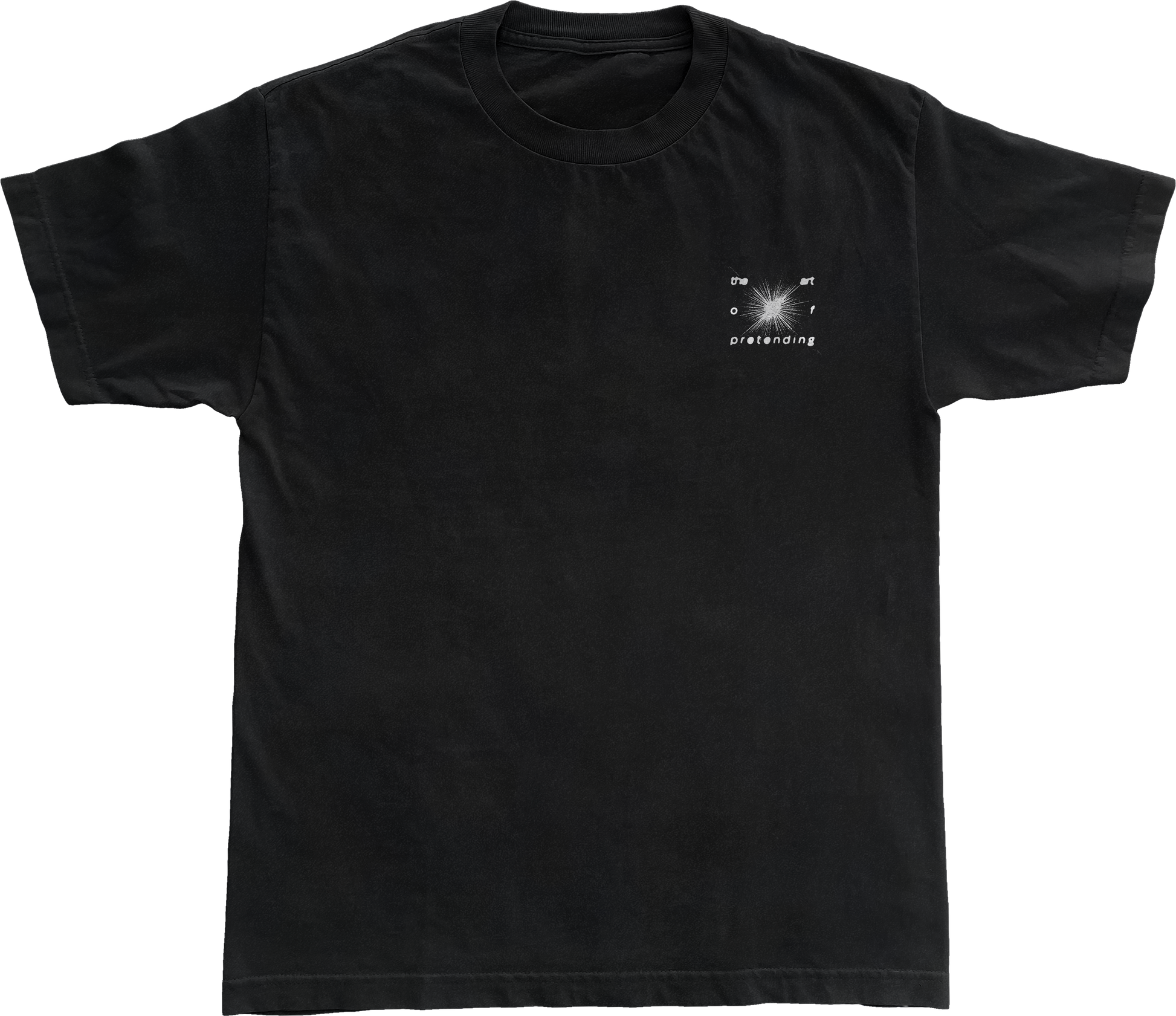 Classic black Laur Elle tee with July + The Art of Pretending and Laur Elle printed on the back, and The Art of Pretending printed on the front